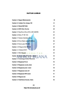 Alat pengaman sepeda motor adalah peralatan yang berfungsi mengamankan sepeda motor ketika tidak ada pengawasan dari pemiliknya. Alat pengaman sepeda motor electric merupakan pengamanan yang efektif dalam melakukan fungsinya. Alat pengaman electrik mudah dikembangkan terbukti dari banyak produsen yang menciptakan alat pengaman sepeda motor electric yang beragam model dan prinsip kerjanya misalnya alarm menggunakan sensor getar. Pembuatan Alat pengaman sepeda motor dengan system Arduino ini dirancang untuk mengamankan sepeda motor dengan sistem pengamanan yang efektif karena dilengkapi dengan GPS (Global Positioning System) yang digunakan untuk melacak koordinat sepeda motor tanpa dibatasi jarak. Alat ini menggunakan modul Wifi ESP 8266 sebagai komunikasi antara pemilik dengan alat. Perancangan Pengaman Sepeda Motor Dengan GPS Tracker U-BLOX NEO-6 Dan Modul Wifi ESP 8266 memiliki tiga fitur keamanan yang di proses dengan Arduino Uno Atmega 328, fitur pertama Security Alarm saat ada sentuhan maka sensor getar SW-420 akan membaca getaran tersebut dan relay pada alat akan menyalakan klakson dan lampu motor Sebagai pemberitahuan, fitur kedua GPS tracker mengetahui titik koordinat, untuk mengetahui lokasi dari alat yang dipasang pada sepeda motor, selain dua fitur diatas alat pengendali GPS juga dapat melakukan mematikan mesin dan klakson dari jarak jauh dengan melalui aplikasi smartphone. Hasil dari tugas akhir ini yaitu peringatan security alarm bekerja pada saat sensor SW-420 mendeteksi getaran, ketika sepeda motor bergerak alarm berbunyi dengan respons time rata-rata 1 detik. Pengujian menonaktifkan mesin dapat bekerja dengan jarak 1700 m durasi respons time rata rata 3,4 detik. Dan GPS tracker dapat bekerja untuk mengetahui posisi letak sepeda motor dan memiliki akurasi jarak rata-rata 11,3 meter dari lokasi yang sebenarnya. Kata kunci: Arduino Uno ATmega328, Gps tracker¸ Modul wifi ESP 8266,Relay