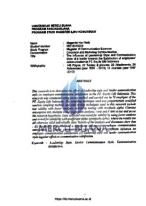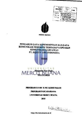 HEDY, MEGANITA NUR (2015) PENGARUH GAYA KEPEMIMPINAN DAN GAYA KOMUNIKASI PEMIMPIN TERHADAP KEPUASAN KOMUNIKASI KARYAWAN PT. EQUITY LIFE INDONESIA. S2 thesis, Universitas Mercu Buana Jakarta.