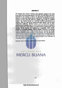 | Uncontrolled Keywords: | Sumber Daya Manusia, Analisa Beban Kerja, Diary Sampling |