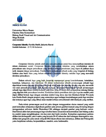 Rizkiah, Mega (2015) CORPORATE IDENTITY FARIDA BUTIK JAKARTA BARAT. S1 thesis, Universitas Mercu Buana.