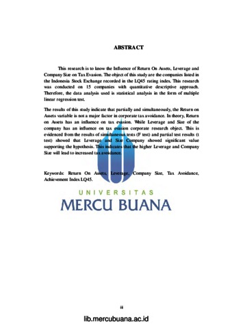 Penelitian ini untuk mengetahui Pengaruh Return On Assets, Leverage dan Ukuran Perusahaan Terhadap Penghindaran Pajak (Tax Evasion). Objek penelitian ini adalah perusahaan- perusahaan yang terdaftar di dalam Bursa Efek Indonesia yang termasuk dalam Index peringkat LQ45. Penelitian ini dilakukan terhadap 15 perusahaan dengan pendekatan deskriptif kuantitatif. Karena itu, analisis data yang digunakan adalah analisis statistik dalam bentuk uji regresi linier berganda. Hasil penelitian ini menunjukkan bahwa secara parsial dan simultan, variabel Return on Assets bukanlah merupakan faktor utama penghindaran pajak perusahaan. secara teori, Return on Assets memiliki pengaruh terhadap penghindaran pajak. sedangkan Leverage dan Ukuran perusahaan memiliki pengaruh terhadap penghindaran pajak perusahaan objek penelitian. Hal ini dibuktikan dari hasil uji simultan (uji F) dan hasil uji parsial (uji t) menunjukkan bahwa Leverage dan Ukuran Perusahaan menunjukkan nilai signifikan mendukung hipotesa. Ini menunjukkan bahwa semakin tinggi Leverage dan Ukuran Perusahaan akan menyebabkan meningkatnya penghindaran pajak (Tax avoidance).