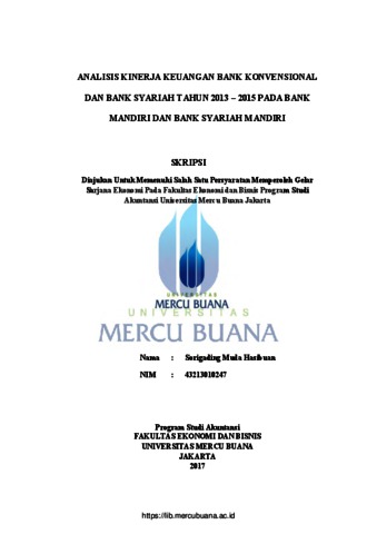 HASIBUAN, SORIGADING MUDA (2017) ANALISIS KINERJA KEUANGAN BANK KONVENSIONAL DAN BANK SYARIAH TAHUN 2013-2015 PADA BANK MANDIRI DAN BANK SYARIAH MANDIRI. S1 thesis, Universitas Mercu Buana Jakarta.