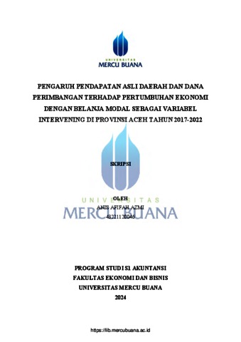 AZMI, ANIS AFIFAH (2024) PENGARUH PENDAPATAN ASLI DAERAH DAN DANA PERIMBANGAN TERHADAP PERTUMBUHAN EKONOMI DENGAN BELANJA MODAL SEBAGAI VARIABEL INTERVENING DI PROVINSI ACEH TAHUN 2017-2022. S1 thesis, Universitas Mercu Buana Jakarta.