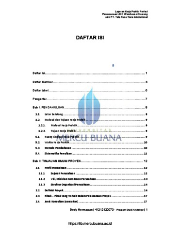 HERMAWAN, DEDY (2017) PERENCANAAN LINC WAREHOUSE CIKARANG PT. TATA NUSA TIARA INTERNATIONAL (Consultant). S1 thesis, Universitas Mercu Buana Jakarta.