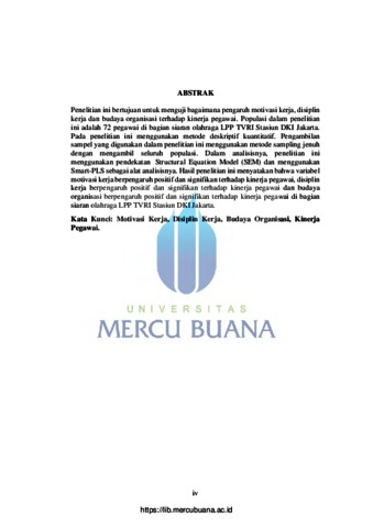 NAJLA, NAJLA (2024) PENGARUH MOTIVASI KERJA, DISIPLIN KERJA DAN BUDAYA ORGANISASI TERHADAP KINERJA PEGAWAI LPP TVRI STASIUN DKI JAKARTA (Studi pada Pegawai Bagian Siaran Olahraga). S1 thesis, Universitas Mercu Buana Jakarta.
