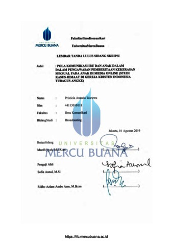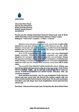 WARUWU, PRISTICIA ANANDA (2019) POLA KOMUNIKASI IBU DAN ANAK DALAM PENGAWASAN PEMBERITAAN KEKERASAN SEKSUAL PADA ANAK DI MEDIA ONLINE (Studi Kasus Jemaat di Gereja Kristen Indonesia Tubagus Angke). S1 thesis, Universitas Mercu Buana Jakarta.