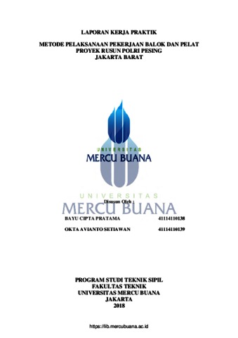 PRATAMA, BAYU CIPTA (2018) METODE PELAKSANAAN PEKERJAAN BALOK DAN PELAT PROYEK RUSUN POLRI PESING JAKARTA BARAT. S1 thesis, Universitas Mercu Buana Jakarta.