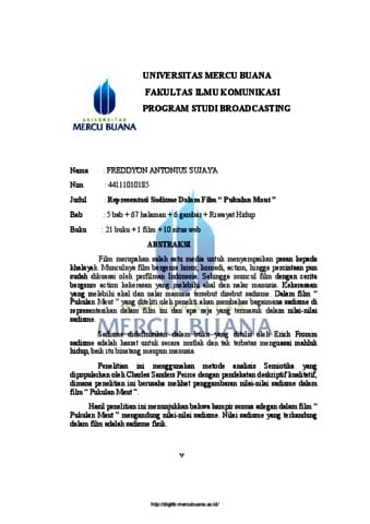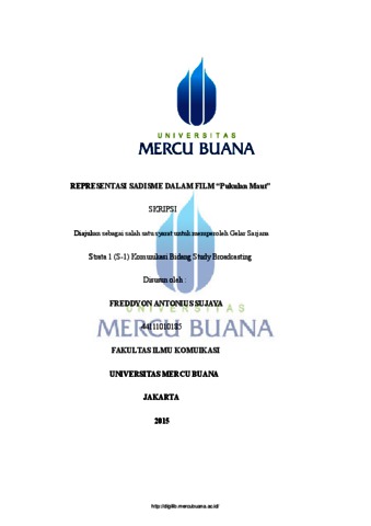 SUJAYA, FREDDYON ANTONIUS (2015) REPRESENTASI SADISME DALAM FILM Pukulan Maut. S1 thesis, Universitas Mercu Buana Jakarta.
