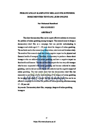 This short documentary film can be a quite effective solution to overcome the problem of online gambling among teenagers. This research aims to design a documentary short film as a campaign that can provide understanding to teenagers and adults aged 17 – 30 years about the dangers of online gambling. The methods used in this research are observation, interviews and literature study. The results of this research show that it has a negative impact on the physical and financial health of teenagers. Therefore, it is necessary to produce a theme about teenagers who are addicted to online gambling and have a negative impact on their health and finances. The story of this film depicts the true story of a teenager who became acquainted with online gambling and became addicted to online gambling, until he did not realize that he was addicted and the negative impact of online gambling. The trial results show that this documentary short film has succeeded in providing a better understanding of the dangers of online gambling for teenagers and adults. It is hoped that this documentary short film can be an effective campaign to overcome the problem of online gambling addiction among 17 - 30 year old. Film pendek dokumenter ini dapat menjadi solusi yang cukup efektif untuk mengatasi masalah pada judi online pada remaja. Penelitian ini bertujuan untuk merancang film pendek dokumenter sebagai kampanye yang dapat memberikan pemahaman kepada remaja dan dewasa usia 17 – 30 tahun tentang bahaya judi online. Metode yang digunakan pada penelitian ini adalah observasi, wawancara dan studi Pustaka, Hasil dari penelitian ini menunjukan bahwa berdampak negatif pada kesehatan fisik dan finansial remaja. Oleh karena itu, dibutuhkan yang dihasilkan mengangkat tema tentang remaja yang kecanduan judi online dan terkena dampak negatif pada kesehatan dan finansialnya. Cerita film ini menggambarkan kisah nyata remaja yang mengenal judi online sampai kecanduan judi online, sampai ia tidak sadar bahwa ia sudah kecanduan dan dampak negatifnya dari judi online. Hasil uji coba menunjukan bahwa film pendek dokumenter ini berhasil memberikan pemahaman yang lebih baik tentang bahaya judi online pada remaja dan dewasa. Diharapkan film pendek dokumenter ini dapat menjadi kampanye yang efektif untuk mengatasi masalah pada kecanduan judi online pada usia 17 – 30 tahun.
