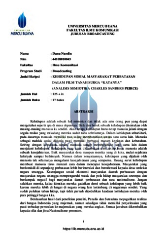 NURDIN, DANU (2013) KEHIDUPAN SOSIAL MASYARAKAT PERBATASAN DALAM FILM TANAH SURGA KATANYA : Analisis Semiotika Charles S. Peirce. S1 thesis, Universitas Mercu Buana Jakarta.