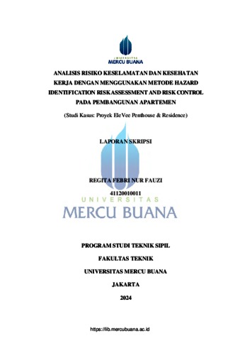 FAUZI, REGITA FEBRI NNUR (2024) ANALISIS RISIKO KESELAMATAN DAN KESEHATAN KERJA DENGAN MENGGUNAKAN METODE HAZARD IDENTIFICATION RISK ASSESSMENT AND RISK CONTROL PADA PEMBANGUNAN APARTEMEN (Studi Kasus: Proyek EleVee Penthouse & Residence). S1 thesis, Universitas Mercu Buana Jakarta.