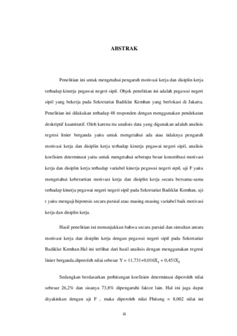 Rumpoko, Muhammad Dimas (2015) PENGARUH MOTIVASI KERJA DAN DISIPLIN KERJA TERHADAP KINERJA PEGAWAI NEGERI SIPIL PADA SEKRETARIAT BADAN PENDIDIKAN DAN PELATIHAN (BADIKLAT ) KEMHAN. S1 thesis, Universitas Mercu Buana.