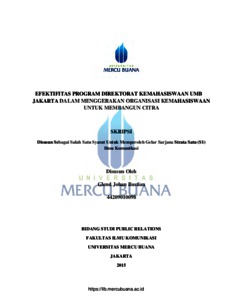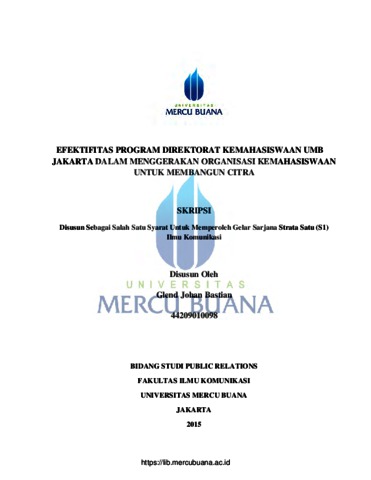 BASTIAN, GLEND JOHAN (2015) EFEKTIFITAS PROGRAM DIREKTORAT KEMAHASISWAAN UMB JAKARTA DALAM MENGGERAKAN ORGANISASI KEMAHASISWAAN UNTUK MEMBANGUN CITRA. S1 thesis, Universitas Mercu Buana.