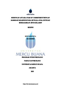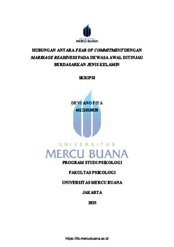 FITA, DEVI ANO (2025) HUBUNGAN ANTARA FEAR OF COMMITMENT DENGAN MARRIAGE READINESS PADA DEWASA AWAL DITINJAU BERDASARKAN JENIS KELAMIN. S1 thesis, Universitas Mercu Buana Jakarta.