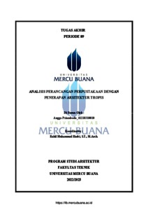 PRIAMBODO, ANGGA (2025) ANALISIS PERANCANGAN PERPUSTAKAAN DENGAN PENERAPAN ARSITEKTUR TROPIS. S1 thesis, Universitas Mercu Buana Jakarta.