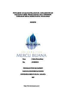 RHAMADHANY, FADLAN (2025) PENGARUH KUALITAS PELAYANAN, CITRA DESTINASI DAN DAYA TARIK WISATA DANAU SITU CIPONDOH TERHADAP MINAT BERKUNJUNG WISATAWAN. S1 thesis, Universitas Mercu Buana Jakarta.