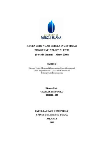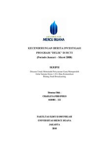 ANDRONIKO, CHARLES (2010) KECENDERUNGAN BERITA INVESTIGASI PROGRAM ”DELIK” DI RCTI. S1 thesis, Universitas Mercu Buana Jakarta.