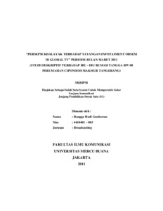 GUSTIAWAN, RANGGA HADI (2011) “PERSEPSI KHALAYAK TERHADAP TAYANGAN INFOTAIMENT OBSESI DI GLOBAL TV” PERIODE BULAN MARET 2011 (STUDI DESKRIPTIF TERHADAP IBU - IBU RUMAH TANGGA RW 08 PERUMAHAN CIPONDOH MAKMUR TANGERANG). S1 thesis, Universitas Mercu Buana Jakarta.