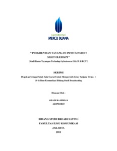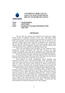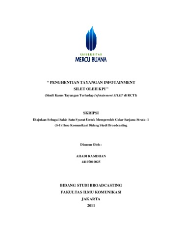 RAMDHAN, AHADI (2011) PENGHENTIAN TAYANGAN INFOTAINMENT SILET OLEH KPI. S1 thesis, Universitas Mercu Buana Jakarta.