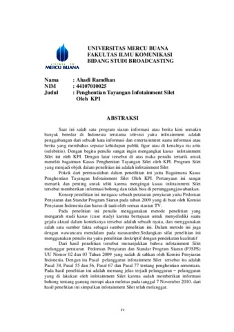 Saat ini salah satu program siaran informasi atau berita kini semakin banyak beredar di Indonesia terutama televisi yaitu infotainment adalah penggabungan dari sebuah kata informasi dan entertainment suatu informasi atau berita yang membahas seputar kehidupan publik figur atau di kenalnya itu artis (selebritis). Dengan begitu penulis sangat ingin mengangkat kasus infotainment Silet ini oleh KPI. Dengan latar tersebut di atas maka penulis tertarik untuk meneliti bagaiman Kasus Penghentian Tayangan Silet oleh KPI. Program Silet yang menjadi objek dalam penelitian ini adalah infotainment Silet Pokok dari permasalahan dalam peneilitian ini yaitu Bagaimana Kasus Penghentian Tayangan Infotainment Silet Oleh KPI. Pertanyaan ini sangat menarik dan penting untuk teliti karena mengingat kasus infotainment Silet tersebut memberikan informasi bohong dan tidak bisa di pertanggungjawabankan. Konsep penelitian ini mengacu sebuah peraturan penyiaran yaitu Pedoman Penyiaran dan Standar Program Siaran pada tahun 2009 yang di buat oleh Komisi Penyiaran Indonesia dan harus di taati oleh semua stasiun TV. Pada penelitian ini penulis menggunakan metode penelitian yang mengarah studi kasus (case study) karena bertujuan untuk menyelediki suatu gejala aktual dalam konteksnya tersebut adalah sebuah nyata, dan menggunakan salah satu sumber fakta sebagai sumber penelitian ini. Dalam metode ini juga dengan wawancara mendalam pada narasumber.Sedangkan sifat penelitian ini menggunakan penulis itu yaitu penelitian deskriptif dengan pendekatan kualitatif Dari hasil penelitian tersebut menunjukkan bahwa infotainment Silet melanggar peraturan Pedoman Penyiaran dan Standar Program Siaran (P3SPS) UU Nomor 02 dan 03 Tahun 2009 yang sudah di sahkan oleh Komisi Penyiaran Indonesia. Dengan itu Pasal pelanggaran infotainment Silet tersebut itu adalah Pasal 34, Pasal 55 dan 56, Pasal 67 dan Pasal 77 tentang penghentian sementara. Pada hasil penelitian ini adalah memang jelas terjadi pelanggaran – pelanggaran yang di lakukan oleh infotainment Silet karena sudah memberikan informasi bohong tentang gunung merapi akan meletus pada tanggal 7 November 2010. dari hasil penelitian ini simpulkan infotainment Silet telah melanggar.