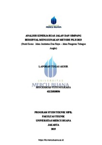 NUGRAHA, MOCHAMAD VITO (2025) ANALISIS KINERJA RUAS JALAN DAN SIMPANG BERSINYAL MENGGUNAKAN METODE PKJI 2023 (Studi Kasus : Jalan Jembatan Dua Raya - Jalan Pangeran Tubagus Angke). S1 thesis, Universitas Mercu Buana.
