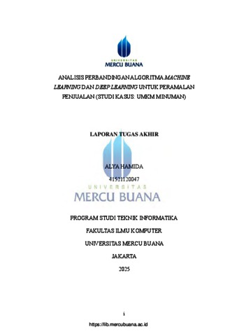 HAMIDA, ALYA (2025) ANALISIS PERBANDINGAN ALGORITMA MACHINE LEARNING DAN DEEP LEARNING UNTUK PERAMALAN PENJUALAN (STUDI KASUS: UMKM MINUMAN). S1 thesis, Universitas Mercu Buana.