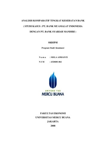AFRIANTI, MELA (2008) ANALISIS KOMPARATIF TINGKAT KESEHATAN BANK ( STUDI KASUS : PT. BANK MUAMALAT INDONESIA DENGAN PT. BANK SYARIAH MANDIRI ). S1 thesis, Universitas Mercu Buana Jakarta.