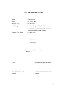 This Research was about comparison of health value syariah banking with study cases of PT. Bank Muamalat Indonesia versus PT. Bank Syariah Mandiri. The purpose of this research is how to know the comparison which health value is better betweem PT. Bank Muamalat Indonesia versus PT. Bank Syariah Mandiri if was observed from CAMEL aspect. Were sinkron with the roof of Bank Indonesia. This research was using of the deskriptif kuantitatif comparative. The result of this research will be showing that the way of working PT. Bank Syariah Mandiri were better than PT. Bank Muamalat Indonesia with each scores were 97,65 and 95,39 – 81,61 and 82,90 for period of 2005-2006.