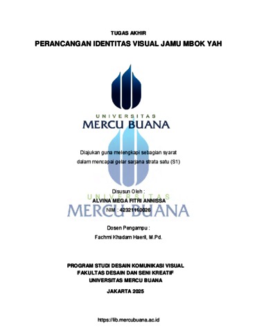 ANNISSA, ALVINA MEGA FITRI (2025) PERANCANGAN IDENTITAS VISUAL JAMU MBOK YAH. S1 thesis, Universitas Mercu Buana Jakarta.