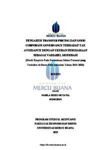 Oktavia, Nabila Rizki (2025) PENGARUH TRANSFER PRICING DAN GOOD CORPORATE GOVERNANCE TERHADAP TAX AVOIDANCE DENGAN UKURAN PERUSAHAAN SEBAGAI VARIABEL MODERASI (Studi Empiris Pada Perusahaan Sektor Farmasi yang Terdaftar di Bursa Efek Indonesia Tahun 2019-2023). S1 thesis, Universitas Mercu Buana.