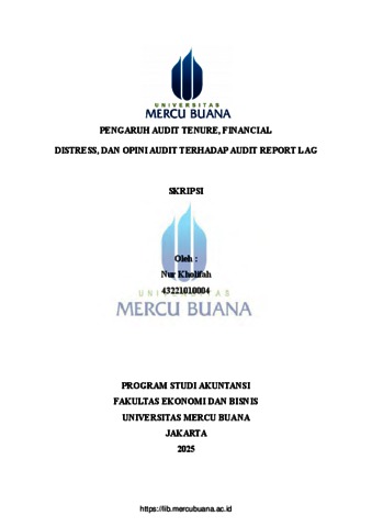 KHOLIFAH, NUR (2025) PENGARUH AUDIT TENURE, FINANCIAL DISTRESS, DAN OPINI AUDIT TERHADAP AUDIT REPORT LAG. S1 thesis, Universitas Mercu Buana.