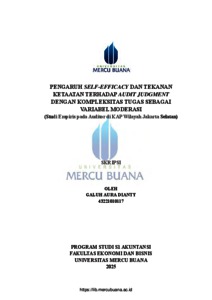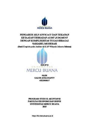 DIANTY, GALUH AURA (2025) PENGARUH SELF-EFFICACY DAN TEKANAN KETAATAN TERHADAP AUDIT JUDGMENT DENGAN KOMPLEKSITAS TUGAS SEBAGAI VARIABEL MODERASI (Studi Empiris pada Auditor di KAP Wilayah Jakarta Selatan). S1 thesis, Universitas Mercu Buana.