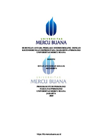 KHALIK, RIYAN ANUGERAH (2025) HUBUNGAN ANTARA PERILAKU DOOMSCROLLING DENGAN KECENDERUNGAN DEPRESI PADA MAHASISWA PSIKOLOGI UNIVERSITAS MERCU BUANA. S1 thesis, Universitas Mercu Buana.
