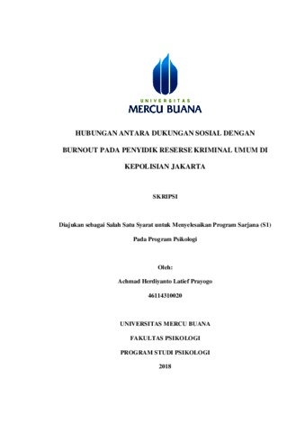 LATIEF PRAYOGO, ACHMAD HERDIYANTO (2017) HUBUNGAN ANTARA DUKUNGAN SOSIAL DENGAN BURNOUT PADA PENYIDIK RESERSE KRIMINAL UMUM DI KEPOLISIAN JAKARTA. S1 thesis, UNIVERISTAS MERCU BUANA - BUNCIT.