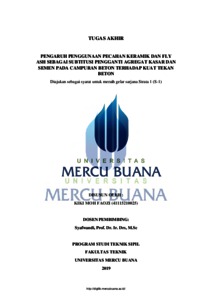 FAOZI, KIKI MOH (2019) PENGARUH PENGGUNAAN PECAHAN KERAMIK DAN FLY ASH SEBAGAI SUBTITUSI PENGGANTI AGREGAT KASAR DAN SEMEN PADA CAMPURAN BETON TERHADAP KUAT TEKAN BETON. S1 thesis, UNIVERSITAS MERCU BUANA - BUNCIT.