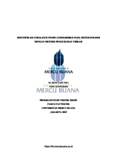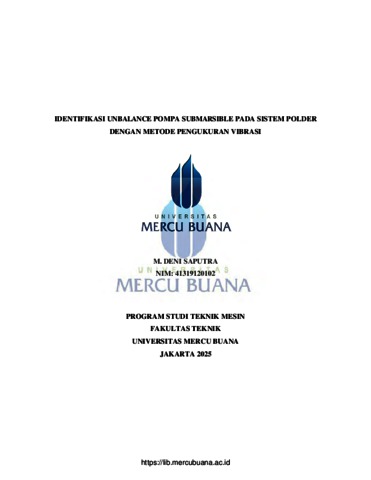 SAPUTRA, M. DENI (2025) IDENTIFIKASI UNBALANCE POMPA SUBMARSIBLE PADA SISTEM POLDER DENGAN METODE PENGUKURAN VIBRASI. S1 thesis, Universitas Mercu Buana.