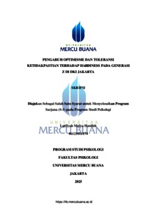 HANIFAH, LUTFIYAH MULYA (2025) PENGARUH OPTIMISME DAN TOLERANSI KETIDAKPASTIAN TERHADAP HARDINESS PADA GENERASI Z DI DKI JAKARTA. S1 thesis, Universitas Mercu Buana Jakarta.