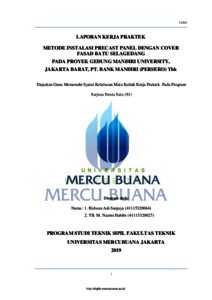 SANJAYA, RIDWAN ADI (2019) METODE INSTALASI PRECAST PANEL DENGAN COVER FASAD BATU SELAGEDANGPADA PROYEK GEDUNG MANDIRI UNIVERSITY, JAKARTA BARAT, PT. BANK MANDIRI (PERSERO) Tbk. S1 thesis, UNIVERISTAS MERCU BUANA - BUNCIT.