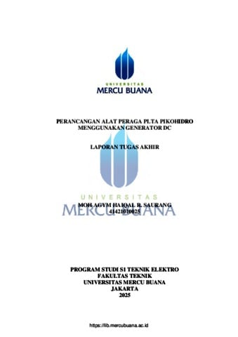 SAURANG, MOH. AGYM HAIQAL R. (2025) PERANCANGAN ALAT PERAGA PLTA PIKOHIDRO MENGGUNAKAN GENERATOR DC. S1 thesis, Universitas Mercu Buana Jakarta.