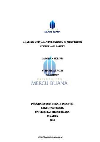 ALFADH, ATHARIC (2025) ANALISIS KEPUASAN PELANGGAN DI MUST BREAK COFFEE AND EATERY. S1 thesis, Universitas Mercu Buana.