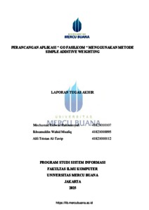 Rahmansyah, Mochamad Ridwan (2025) PERANCANGAN APLIKASI "GO FASILKOM" MENGGUNAKAN METODE SIMPLE ADDITIVE WEIGHTING. S1 thesis, Universitas Mercu Buana.