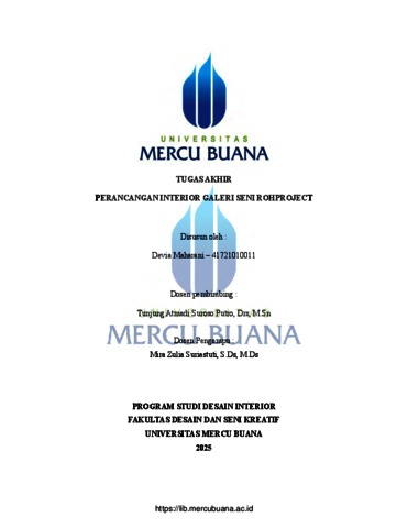MAHARANI, DEVIA (2025) PERANCANGAN INTERIOR GALERI SENI ROHPROJECT. S1 thesis, Universitas Mercu Buana Jakarta.