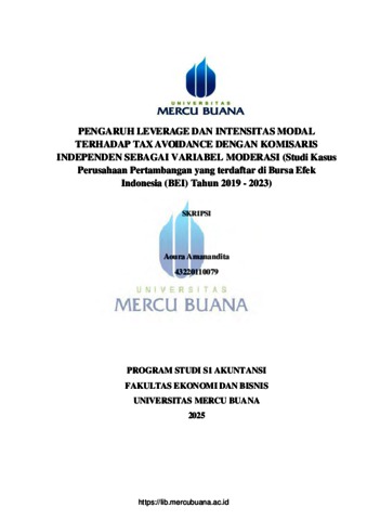 AMANANDITA, AOURA (2025) PENGARUH LEVERAGE DAN INTENSITAS MODAL TERHADAP TAX AVOIDANCE DENGAN KOMISARIS INDEPENDEN SEBAGAI VARIABEL MODERASI (Studi Kasus Perusahaan Pertambangan yang terdaftar di Bursa Efek Indonesia (BEI) Tahun 2019 - 2023). S1 thesis, Universitas Mercu Buana.
