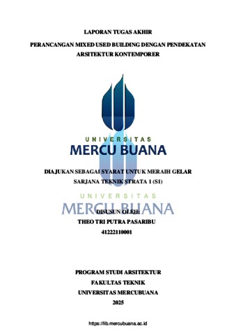 PASARIBU, THEO TRI PUTRA (2025) PERANCANGAN MIXED USED BUILDING DENGAN PENDEKATAN ARSITEKTUR KONTEMPORER. S1 thesis, Universitas Mercu Buana Jakarta.