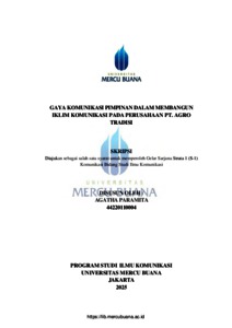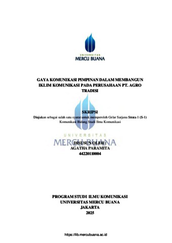 PARAMITA, AGATHA (2025) GAYA KOMUNIKASI PIMPINAN DALAM MEMBANGUN IKLIM KOMUNIKASI PADA PERUSAHAAN PT. AGRO TRADISI. S1 thesis, Universitas Mercu Buana.