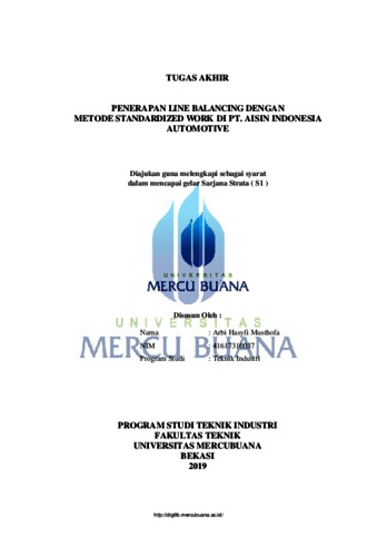 MUSTHOFA, ARBI HASYI (2019) PENERAPAN LINE BALANCING DENGAN METODE STANDARDIZED WORK DI PT. AISIN INDONESIA AUTOMOTIVE. S1 thesis, UNIVERSITAS MERCU BUANA - BUNCIT.