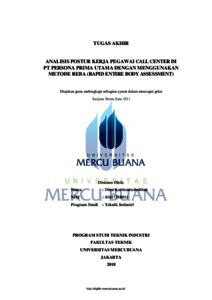 KARIMATUSHOLIHAT, DINA (2019) ANALISIS POSTUR KERJA PEGAWAI CALL CENTER DI PT PERSONA PRIMA UTAMA DENGAN MENGGUNAKAN METODE REBA (RAPID ENTIRE BODY ASSESSMENT). S1 thesis, UNIVERISTAS MERCU BUANA - BUNCIT.