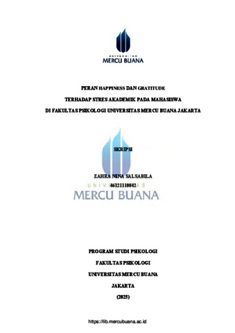 SALSABILA, ZAHRA NINA (2025) PERAN HAPPINESS DAN GRATITUDE TERHADAP STRES AKADEMIK PADA MAHASISWA DI FAKULTAS PSIKOLOGI UNIVERSITAS MERCU BUANA JAKARTA. S1 thesis, Universitas Mercu Buana.