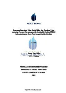 The growing awareness of environmental issues has driven a shift in consumer behaviour within the fashion industry, creating opportunities for businesses to develop sustainable fashion products. However, in Indonesia particularly within the MSME (Micro, Small, and Medium Enterprises) sector, the implementation of sustainability principles still faces various challenges, including the low purchase intention among consumers toward sustainability-focused products. This study aims to analyze the influence of functional value, social value, and emotional value as independent variables on purchase intention as the dependent variable, with green trust as a mediating variable. A quantitative approach was used, employing the Partial Least Squares Structural Equation Modeling (PLS-SEM) method and involving 200 respondents residing across Indonesia. The results indicate that functional value and emotional value have a direct positive effect on purchase intention, while social value has no direct effect. However, green trust is proven to successfully mediate the relationship between all three value variables and purchase intention. These findings are expected to contribute to the development of sustainability-based marketing strategies for MSMEs and strengthen consumer trust in local sustainable fashion products. Keywords: Indonesian MSMEs, Sustainable Fashion, Functional Value, Social Value, Emotional Value, Green Trust, Purchase Intention Peningkatan kesadaran terhadap isu lingkungan telah mendorong perubahan perilaku konsumen dalam industri fashion, sehingga menciptakan peluang bagi pelaku usaha untuk mengembangkan produk sustainable fashion. Namun, di Indonesia, khususnya pada sektor UMKM, implementasi prinsip keberlanjutan masih menghadapi berbagai tantangan, termasuk rendahnya niat pembelian konsumen terhadap produk yang berfokus pada sustainability. Penelitian ini bertujuan untuk menganalisis pengaruh functional value, social value, dan emotional value sebagai variabel independen terhadap purchase intention sebagai variabel dependen, dengan green trust sebagai variabel mediasi. Penelitian ini menggunakan pendekatan kuantitatif dengan metode Partial Least Square Structural Equation Modeling (PLS-SEM) dan melibatkan 200 responden yang berdomisili di wilayah Indonesia. Hasil penelitian menunjukkan bahwa functional value dan emotional value berpengaruh positif langsung terhadap purchase intention, sedangkan social value tidak berpengaruh langsung. Namun demikian, green trust terbukti berhasil memediasi hubungan ketiga variabel nilai terhadap purchase intention. Temuan ini diharapkan dapat memberikan kontribusi dalam pengembangan strategi pemasaran UMKM berbasis keberlanjutan serta memperkuat kepercayaan konsumen terhadap produk sustainable fashion lokal. Kata Kunci: UMKM Indonesia, Sustainable Fashion, Nilai Fungsional, Nilai Sosial, Nilai Emosional, Kepercayaan Hijau, Niat Pemeblian