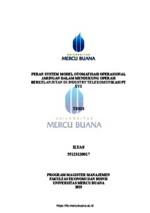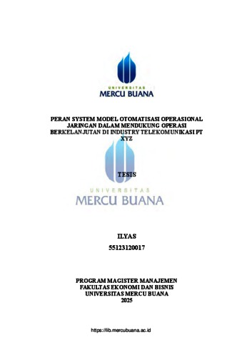 ILYAS, ILYAS (2025) PERAN SYSTEM MODEL OTOMATISASI OPERASIONAL JARINGAN DALAM MENDUKUNG OPERASI BERKELANJUTAN DI INDUSTRY TELEKOMUNIKASI PT XYZ. S2 thesis, Universitas Mercu Buana.